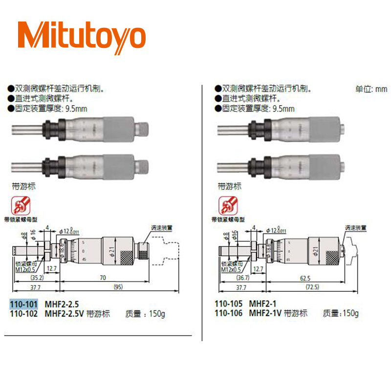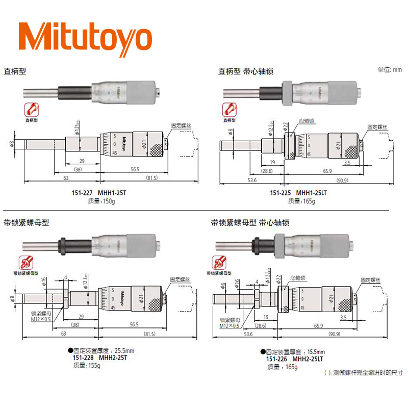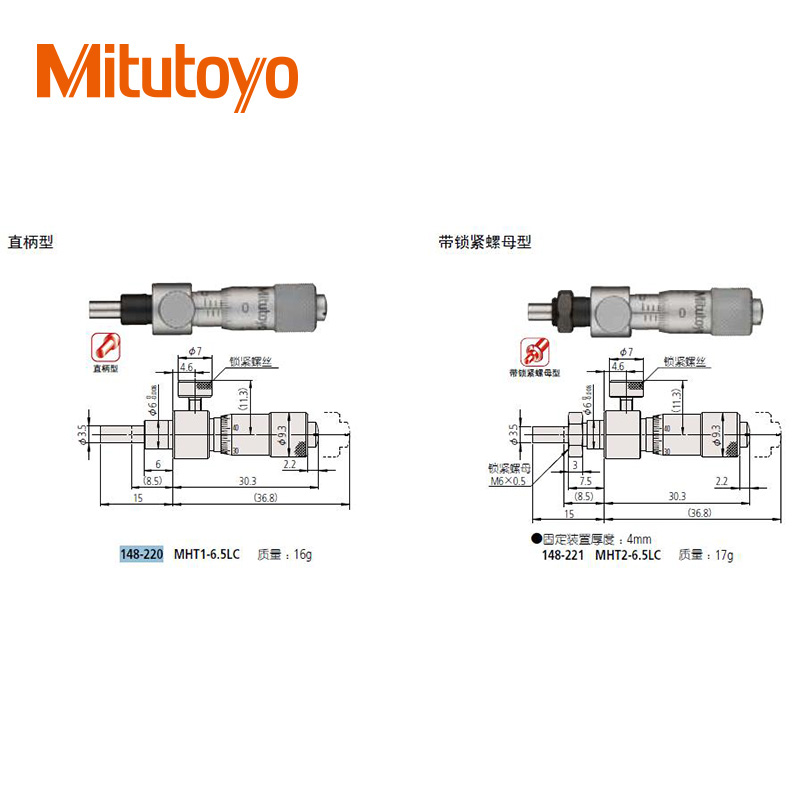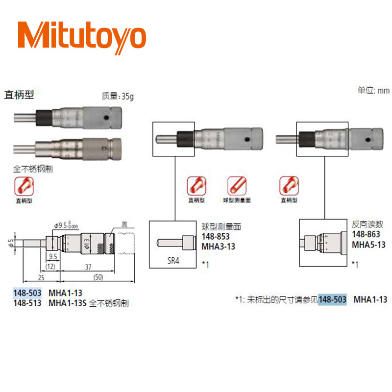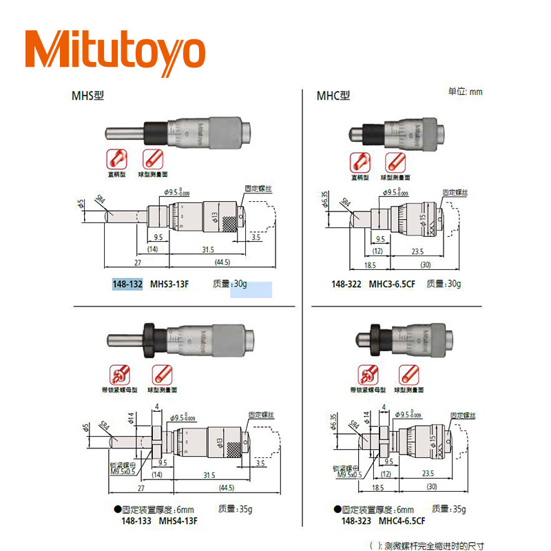 • 測微頭帶有硬質合金測微螺桿的小型化標準型(0-13mm)