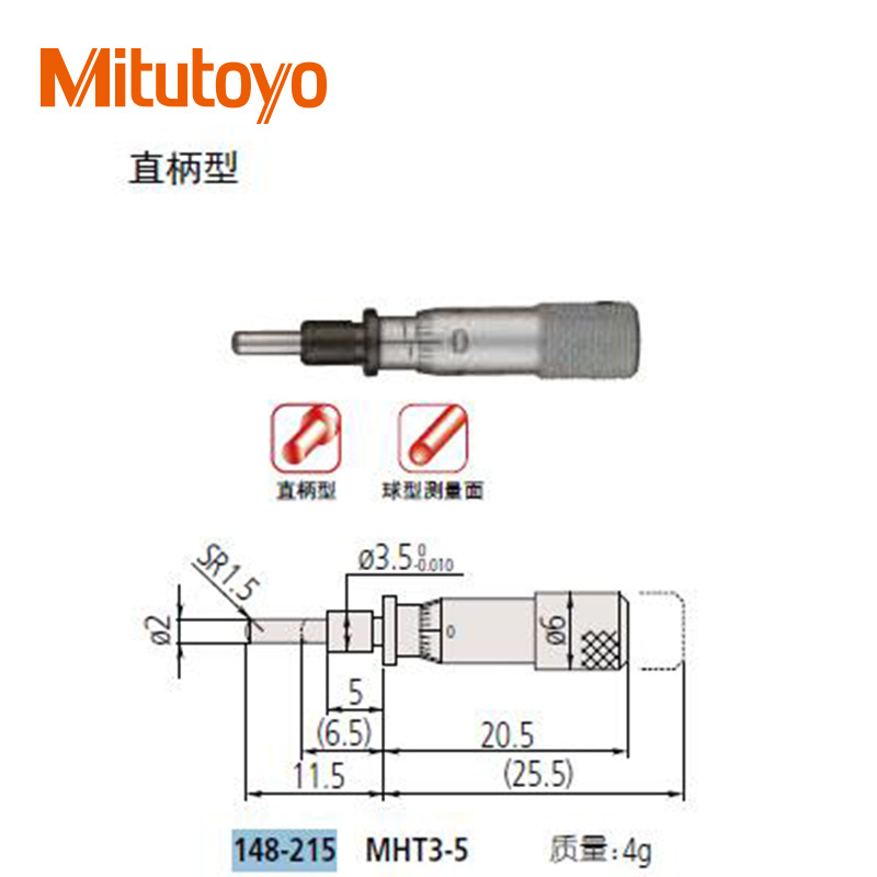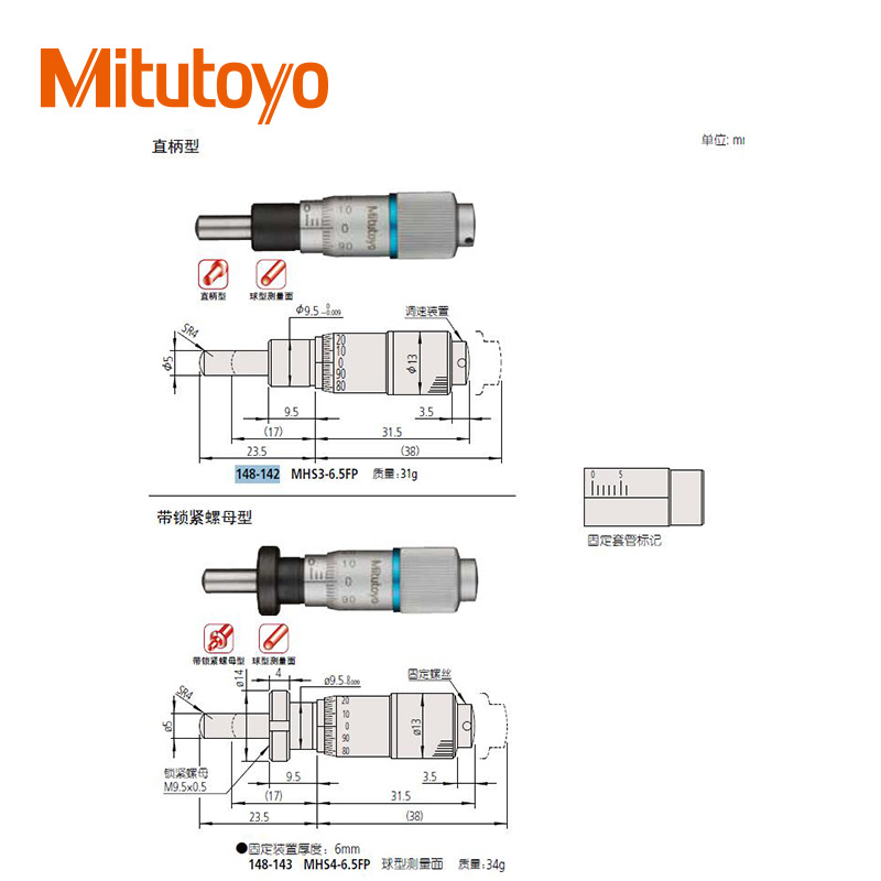 • 測微頭帶有可調零微分筒的小型化標準型(0-13mm)