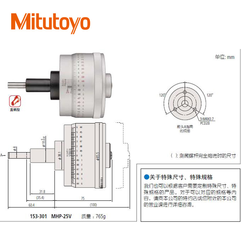 • 測微頭直進式測微螺桿型(0-25mm)